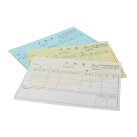 2枚複写から5枚複写まで、お客様の業務に合わせた仕様でご提案が可能です。サイズや用紙の種類、ナンバリング印刷などのオプションにも対応しております。既存の伝票デザインの再現や、オリジナルデザインでの作成も承ります。
